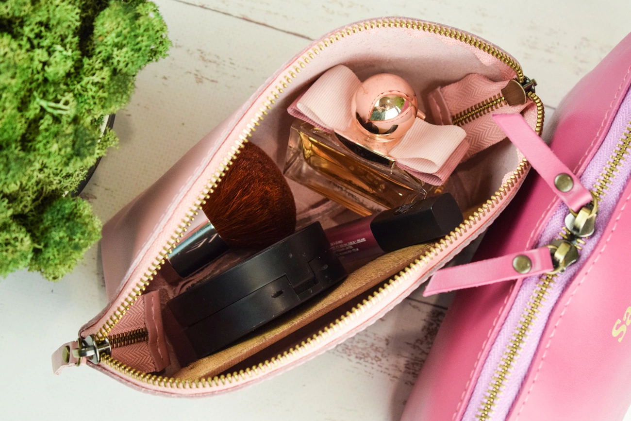 Косметичка виготовлена з натуральної шкіри. Закривається на металеву блискавку. Усередині 1 основне відділення.