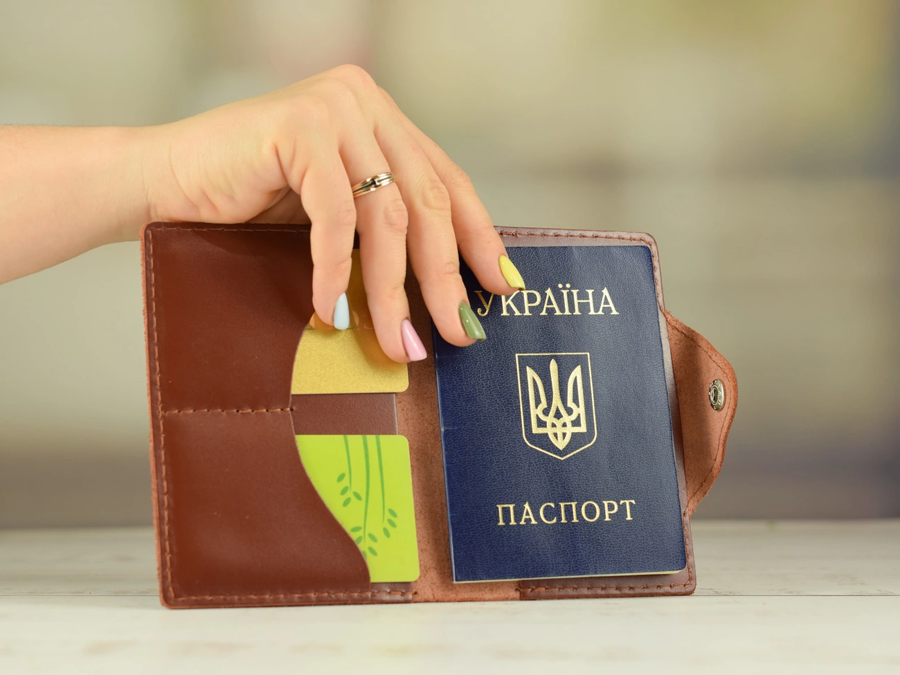 Обгортака для паспорта з двома відділеннями для карток.