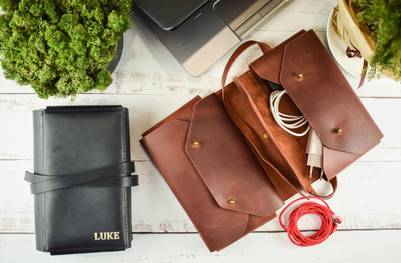 Органайзер для проводів та зарядок шкіряний Babak 009