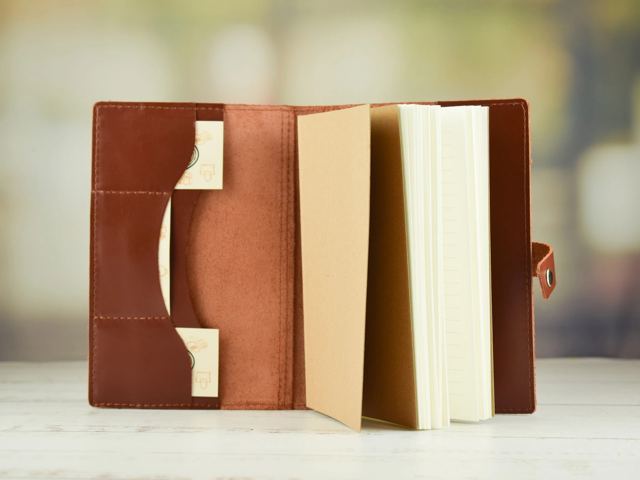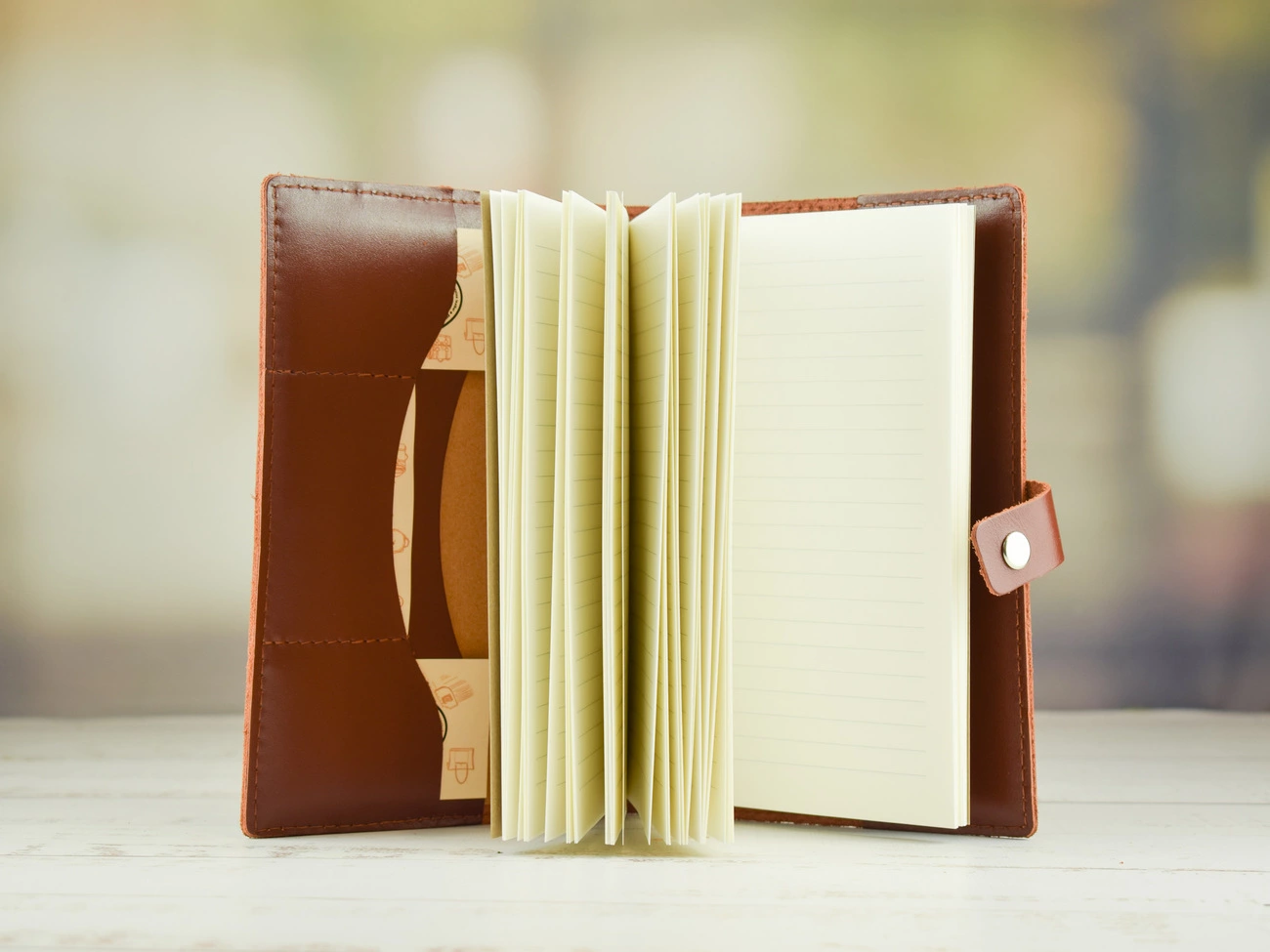 - Блокнот у шкіряній обкладинці на кнопці.